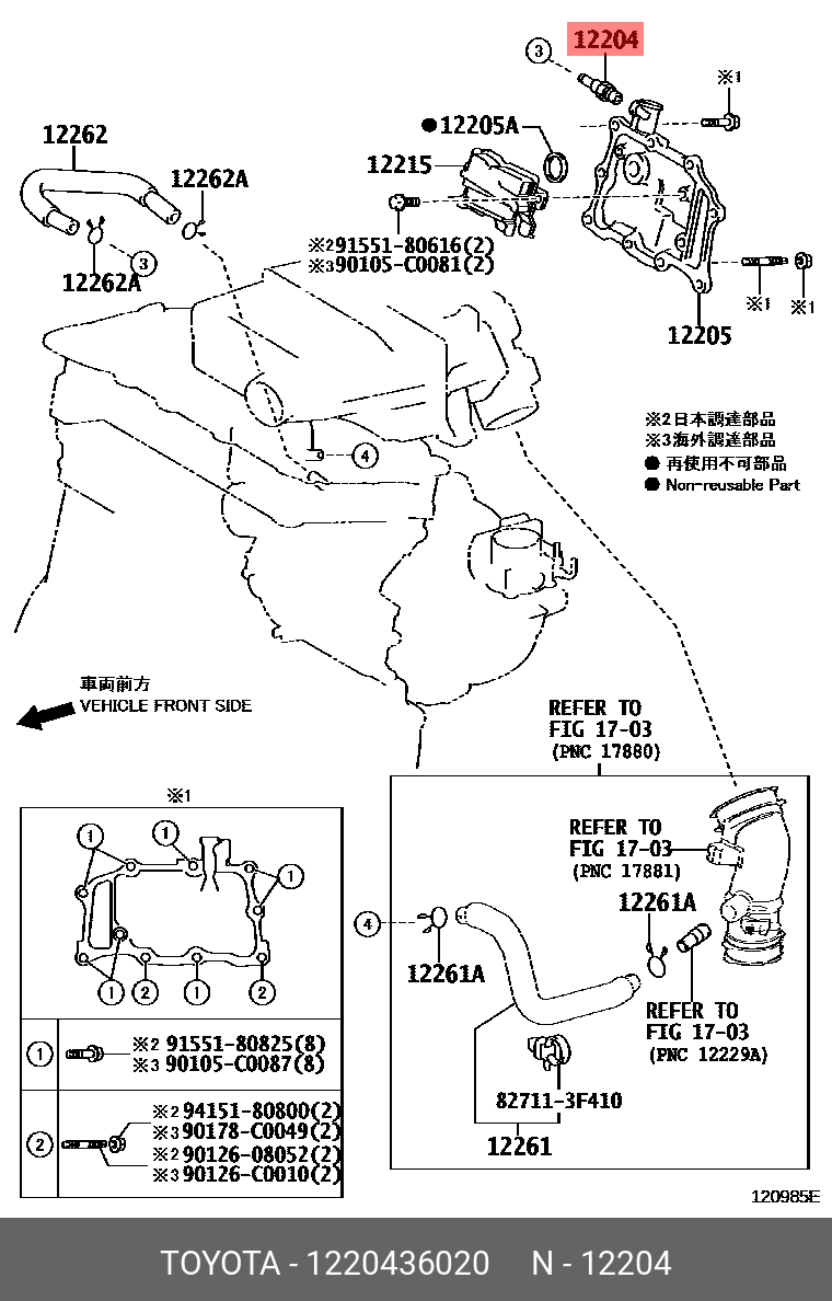 12204-36020 TOYOTA клапан вентиляции картерных газов ! \ Lexus ES350/RX270, Toyota Camry/Highlander