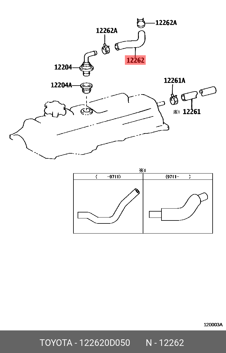 12262-0D050 TOYOTA Шланг вентиляции картера 12262-0D050