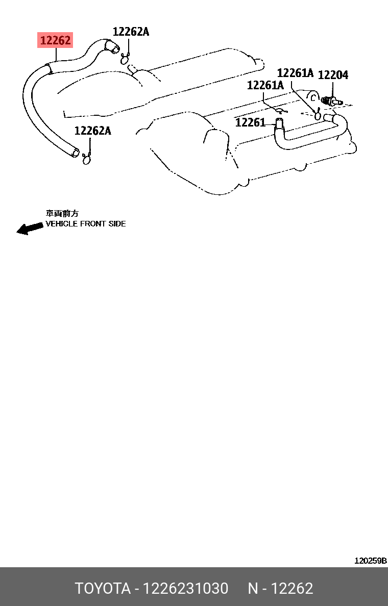 12262-31030 TOYOTA трубка вентиляции картерных газов !\ Toyota