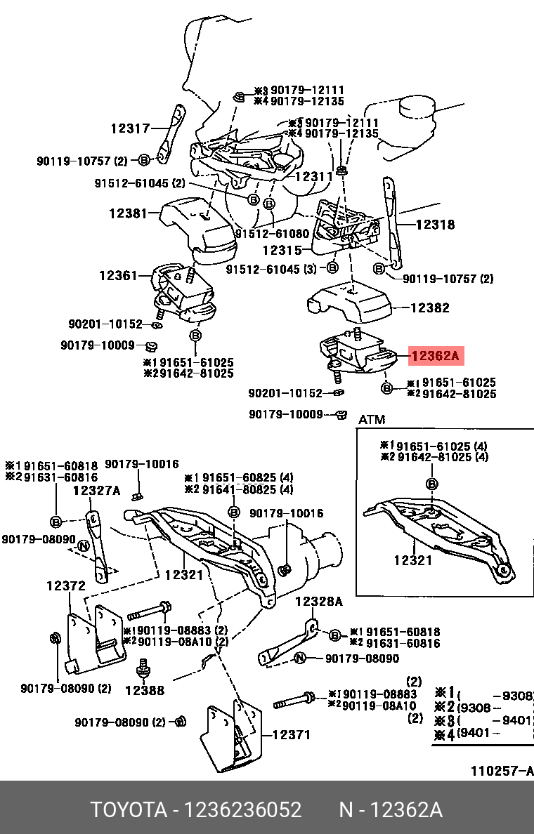 12362-36052 TOYOTA подушка ДВС передняя правая!\ Toyota Camry 2.5 15>