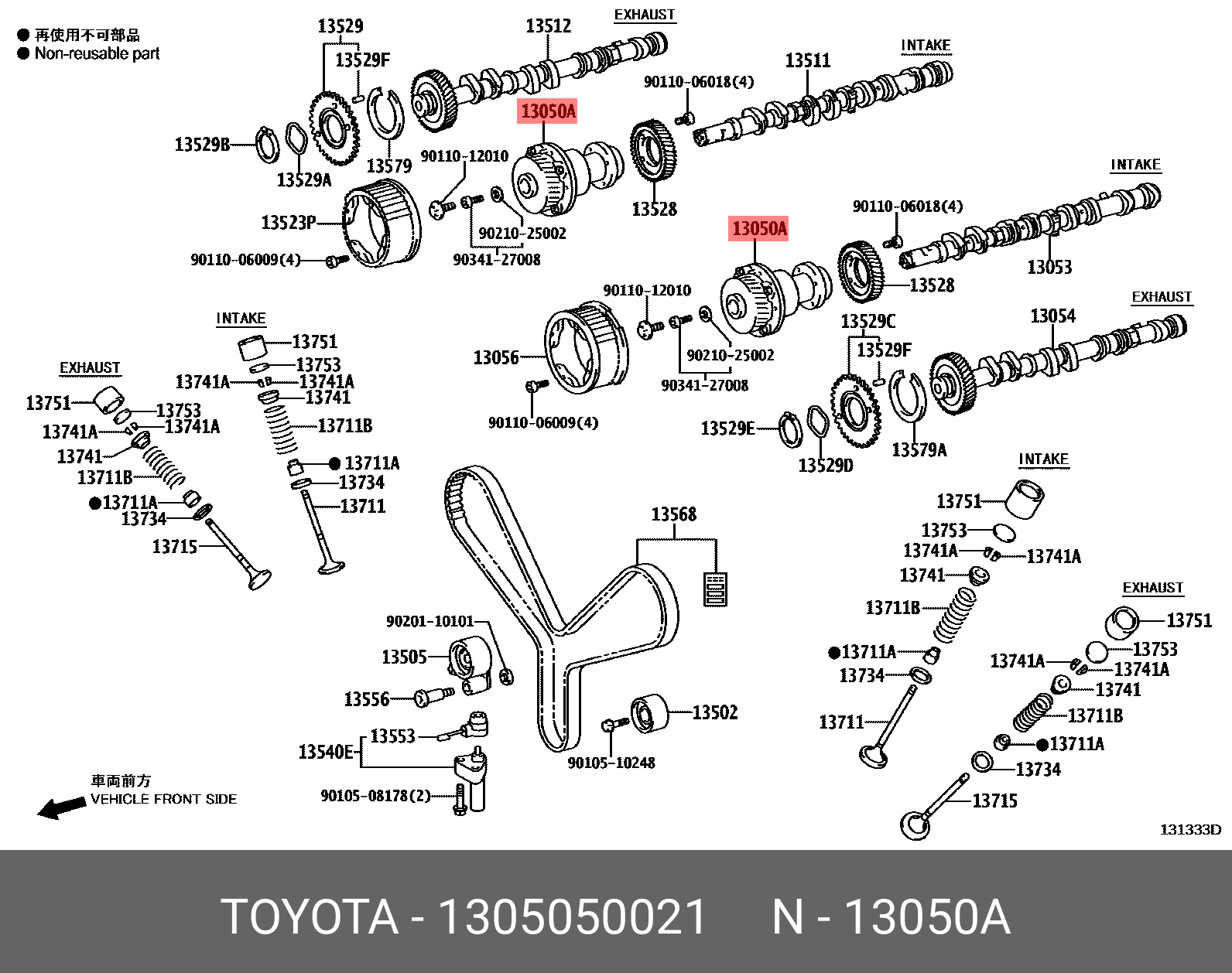 13050-50021 TOYOTA шкив распредвала!\ Toyota Land Cruiser 100/Sequoia/LX470/GX470