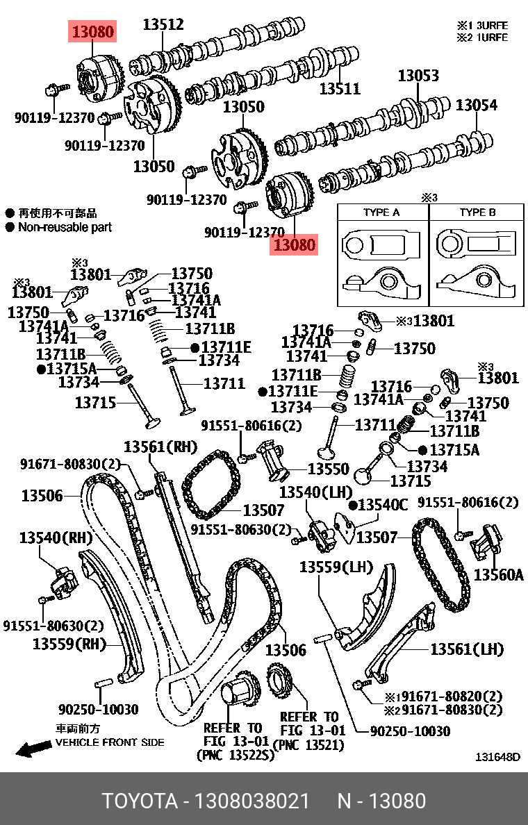 13080-38021 TOYOTA МУФТА VVTI ВЫПУСК GEAR ASSY, CAMSHAFT 13080-38021