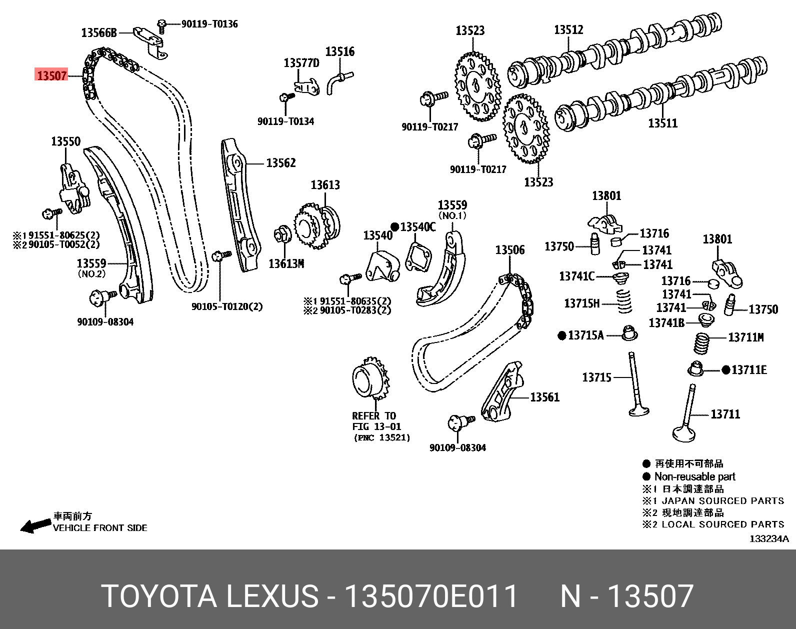 13507-0E011 TOYOTA Цепь ГРМ (№2) 1-2GD HILUX/LC PRADO GDJ15# 15- 13507-0E011