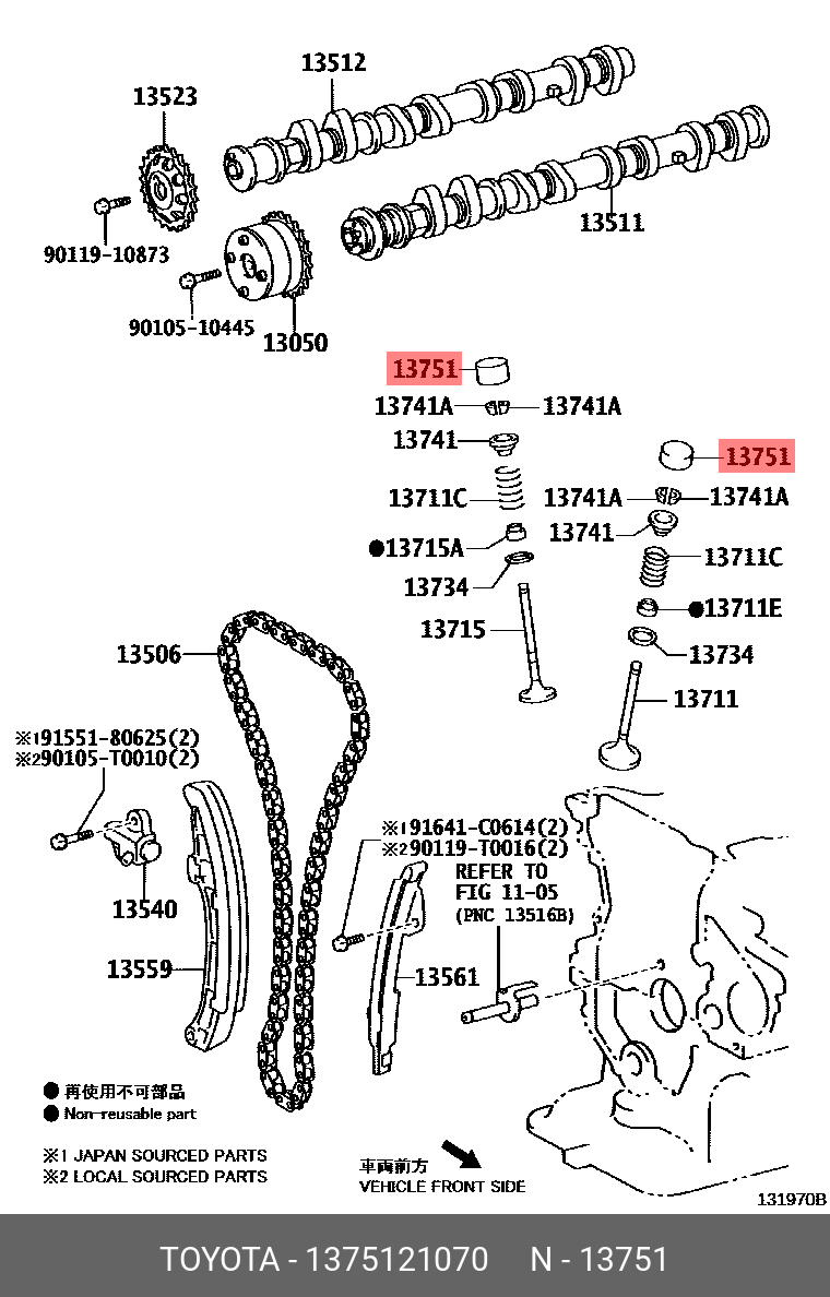 13751-21070 TOYOTA Толкатель клапана Т 516