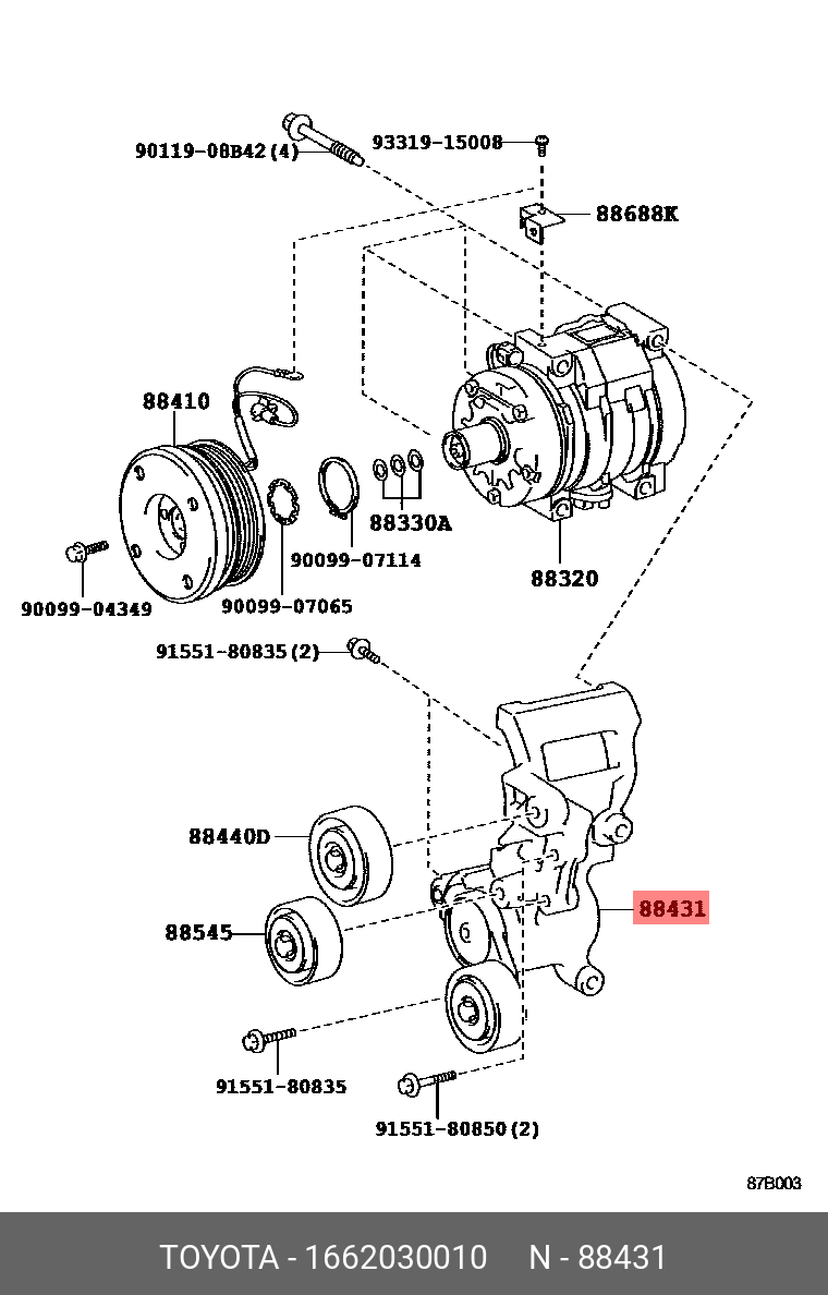16620-30010 TOYOTA ролик натяжной c механизмом натяжения!\ Toyota Land Cruiser 100 3.0D-4D 03>