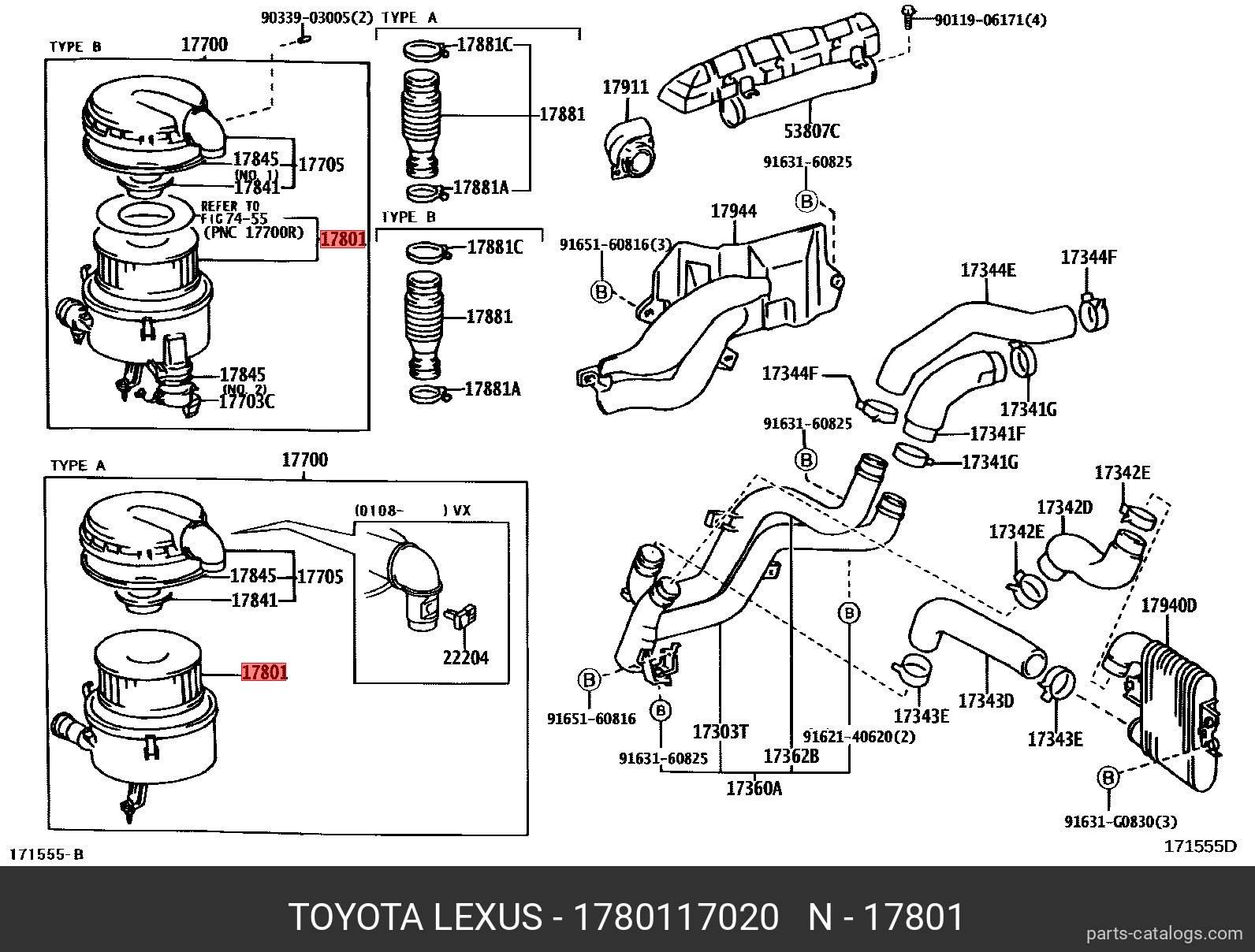 17801-17020 TOYOTA фильтр воздушный!\ Toyota Land Cruiser 4.2TD 98>