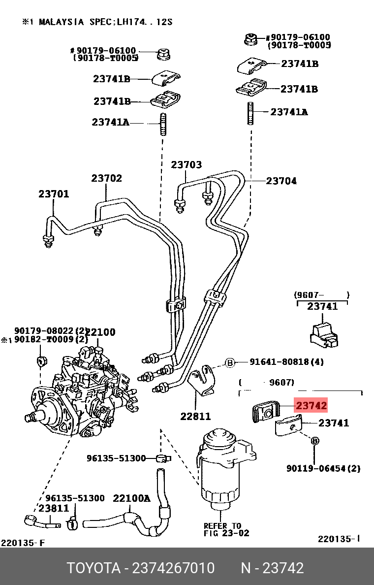 23742-67010 TOYOTA Кронштейн топливной трубки 23742-67010