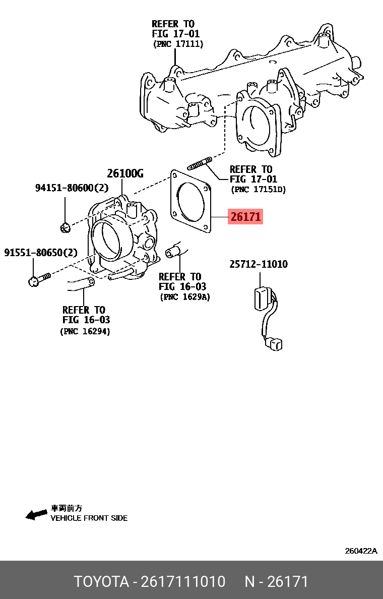 26171-11010 TOYOTA прокладка дрос. заслонки!\ Toyota Fortuner/ Hilux/ Land Cruiser/ Hiace