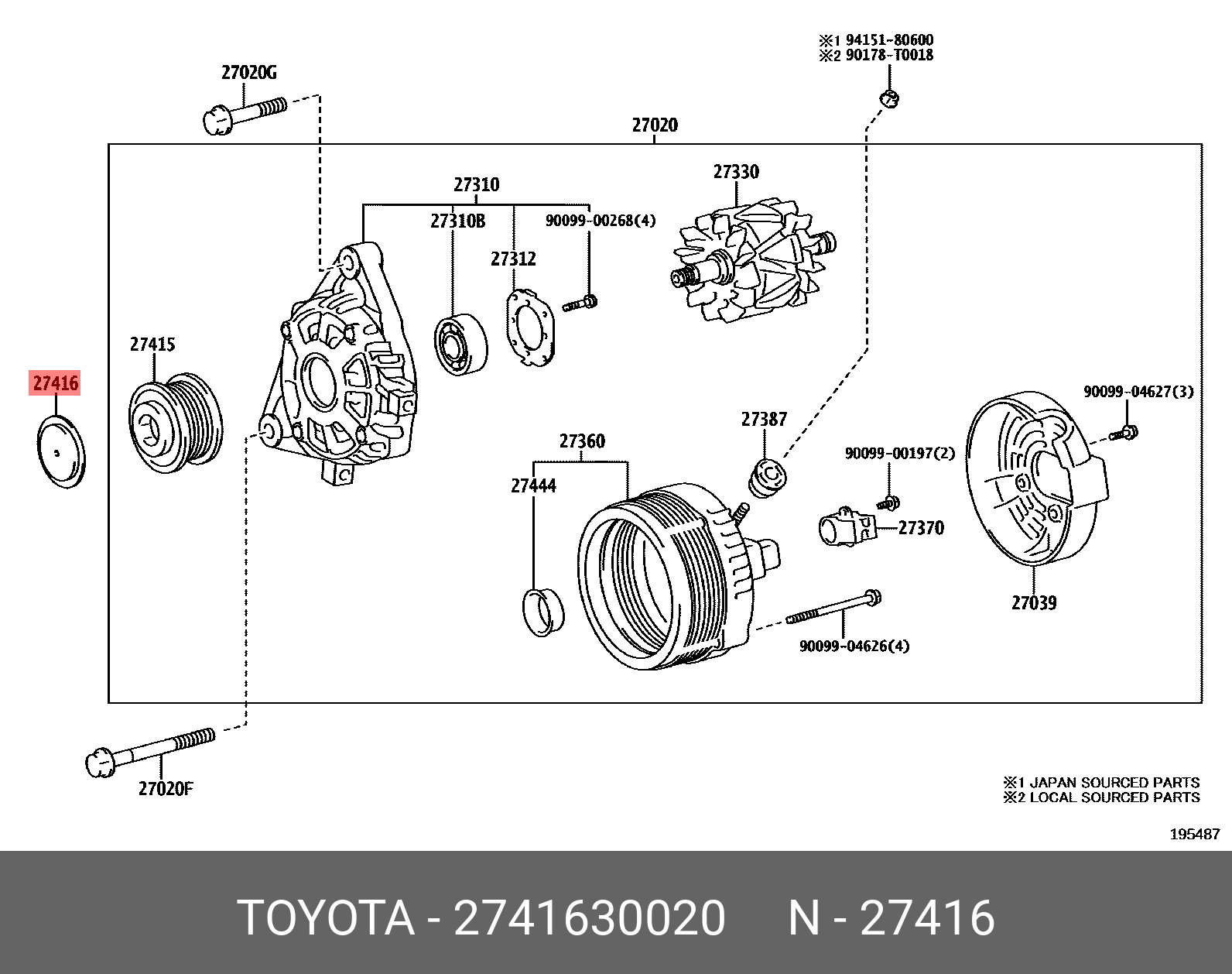 27416-30020 TOYOTA Крышка 27416-30020