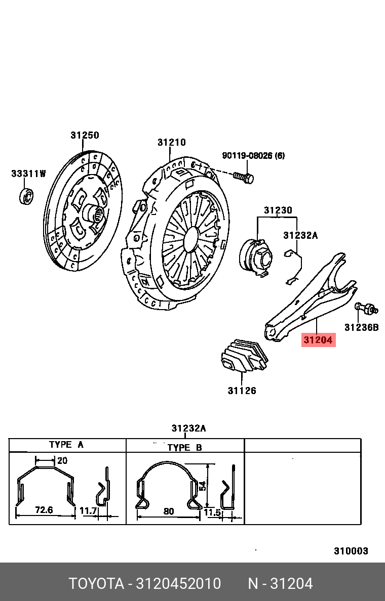 31204-52010 TOYOTA вилка сцепления!\ Toyota