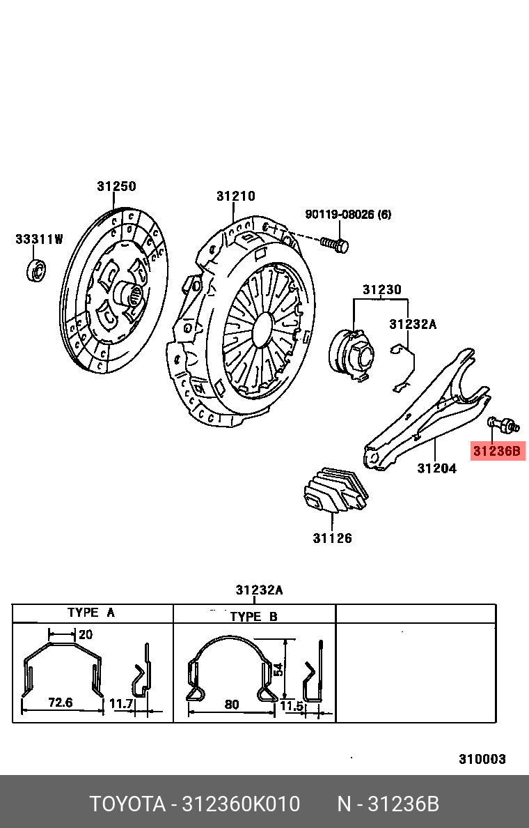 31236-0K010 TOYOTA УПОР ВИЛКИ СЦЕПЛЕНИЯ 8973545501 31236-0K010