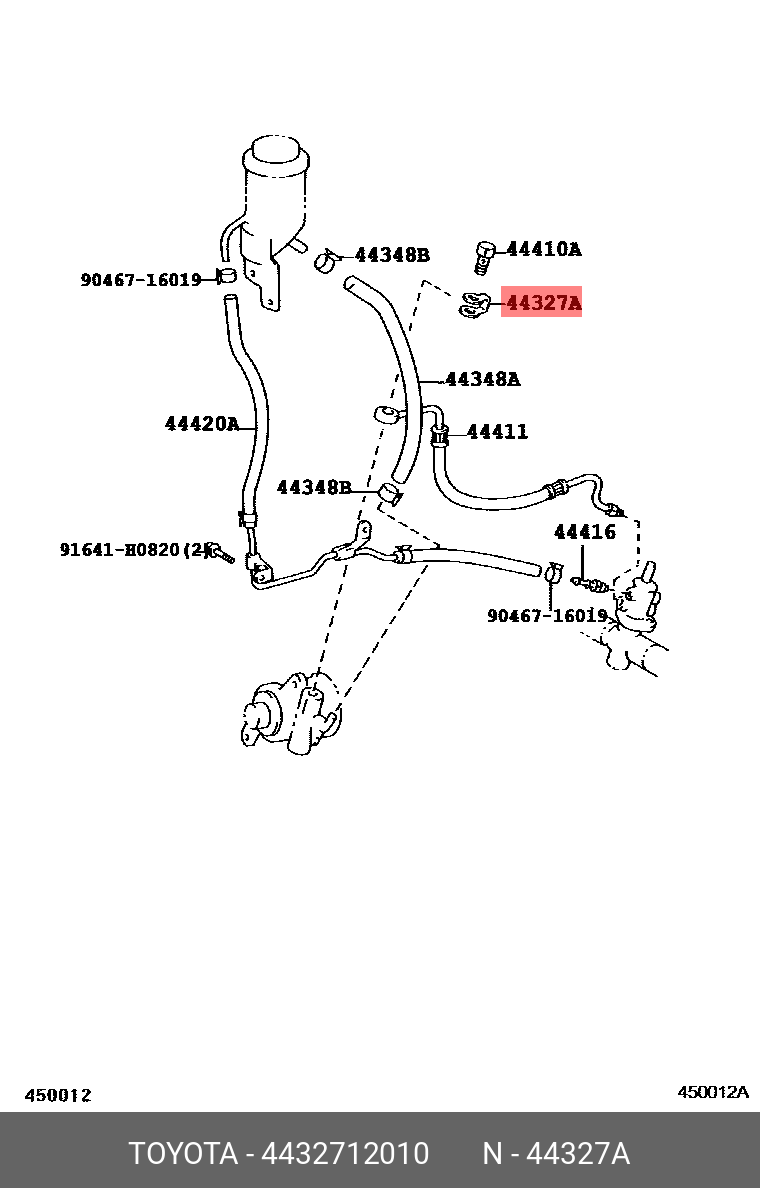 44327-12010 TOYOTA прокладка трубки гидроусилителя!\ Toyota Avensis 97>/Camry 92>/Land Cruiser 96>