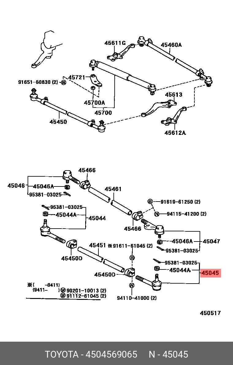 45045-69065 TOYOTA НАКОНЕЧНИК РУЛ/END SUB-ASSY, 45045-69065