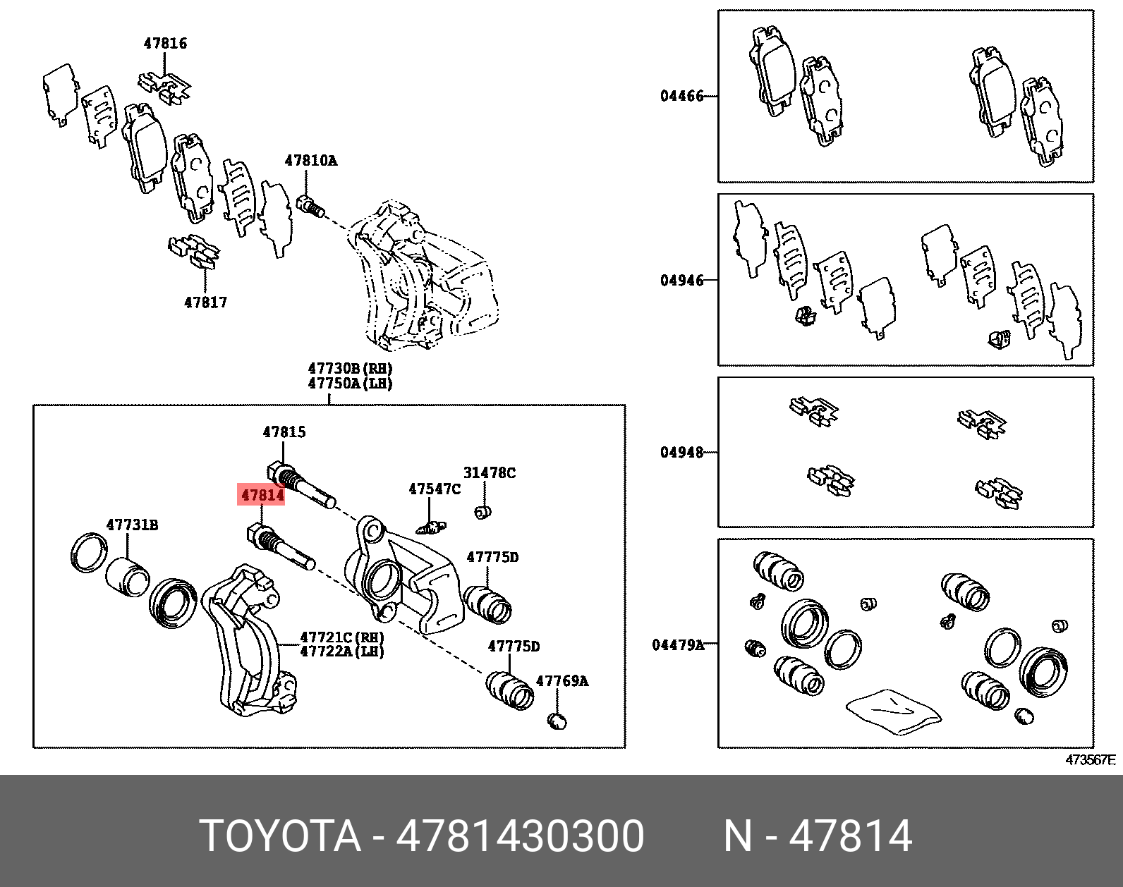 47814-30300 TOYOTA направляющая тормозного суппорта! заднего\ Toyota