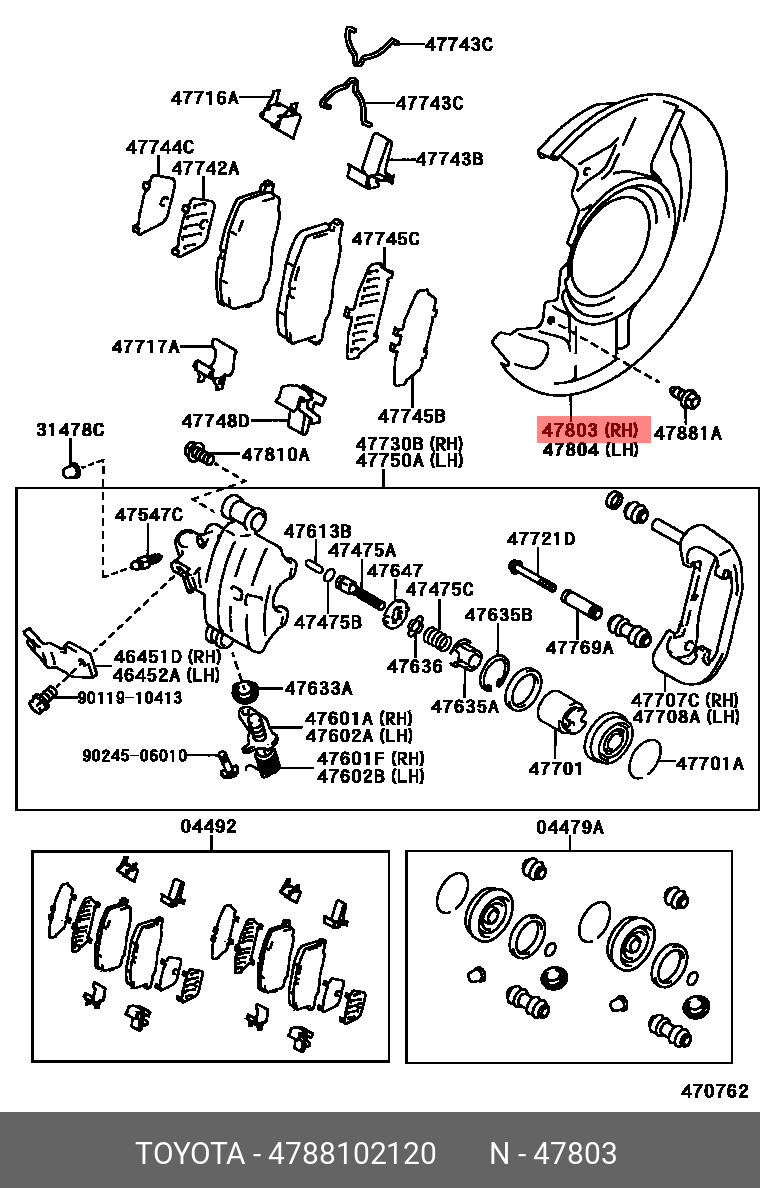 47881-02120 TOYOTA щиток диска тормозного! задн. прав.\ Toyota