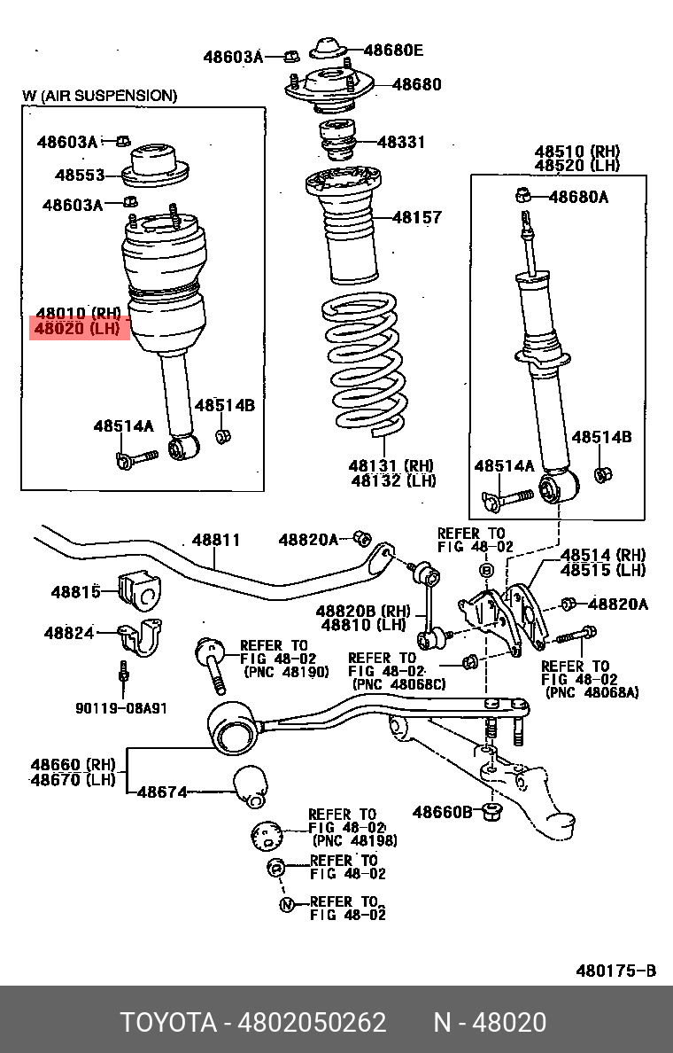 48020-50262 TOYOTA пневматический амортизатор!\ Lexus LS460