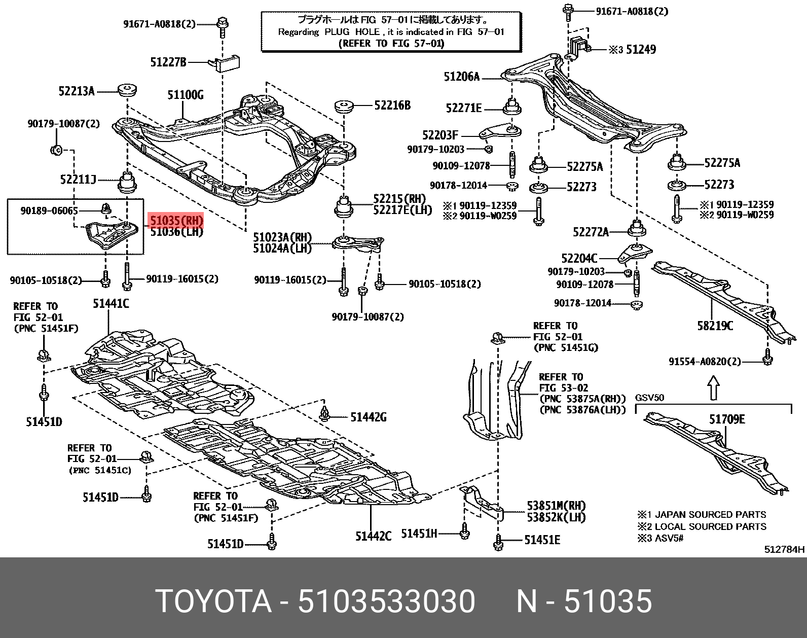 51035-33030 TOYOTA кронштейн переднего подрамника!\ Toyota