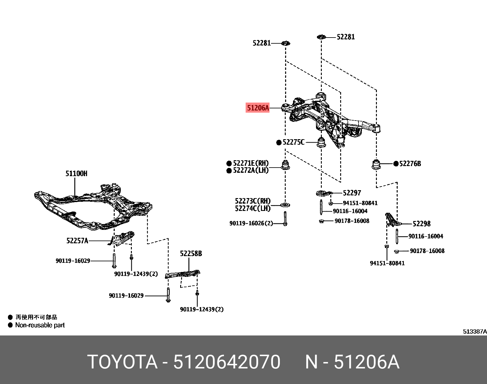 51206-42070 TOYOTA Балка подвески 51206-42070