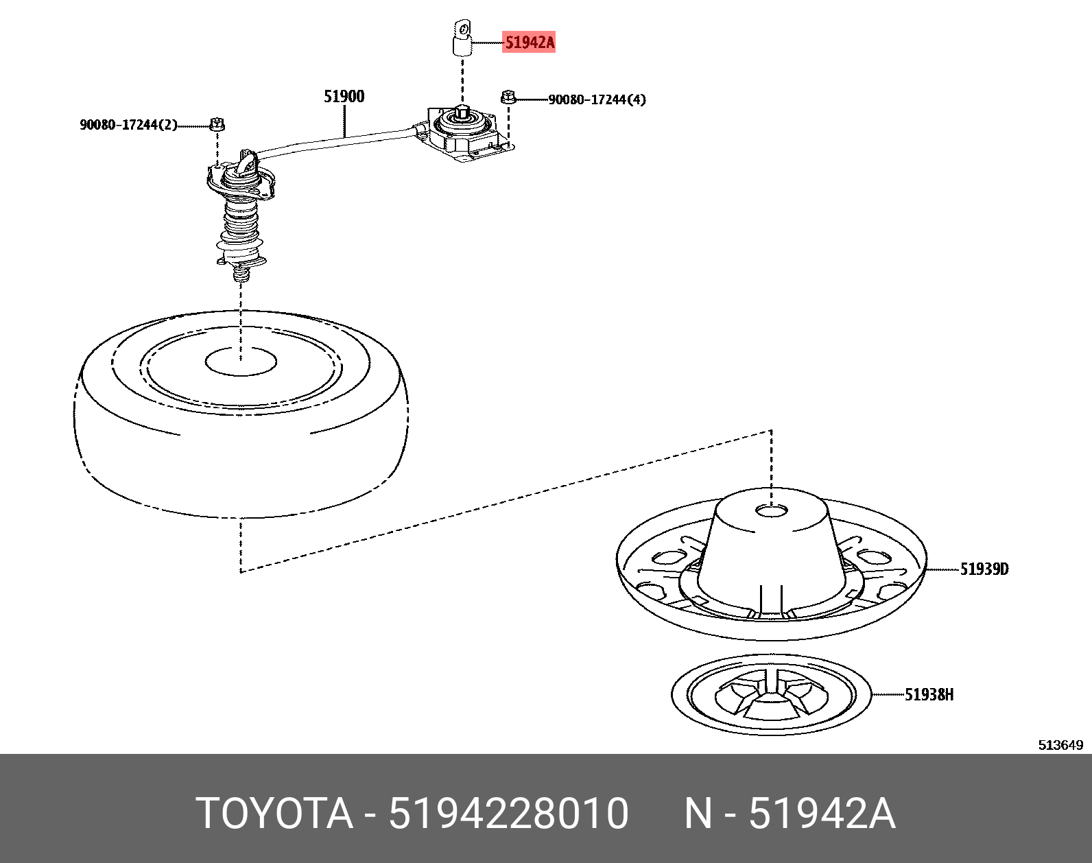 51942-28010 TOYOTA гайка крепления запасного колеса!\ Toyota Highlander 3.5L V6 AT 2019