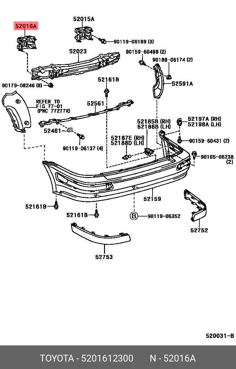 52016-12300 TOYOTA Кронштейн заднего бампера левый 52016-12300