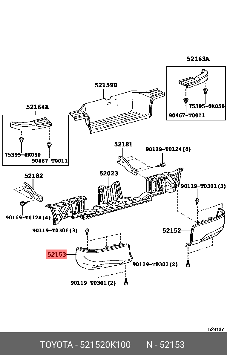 52152-0K100 TOYOTA накладка заднего бампера левая!\ Toyota