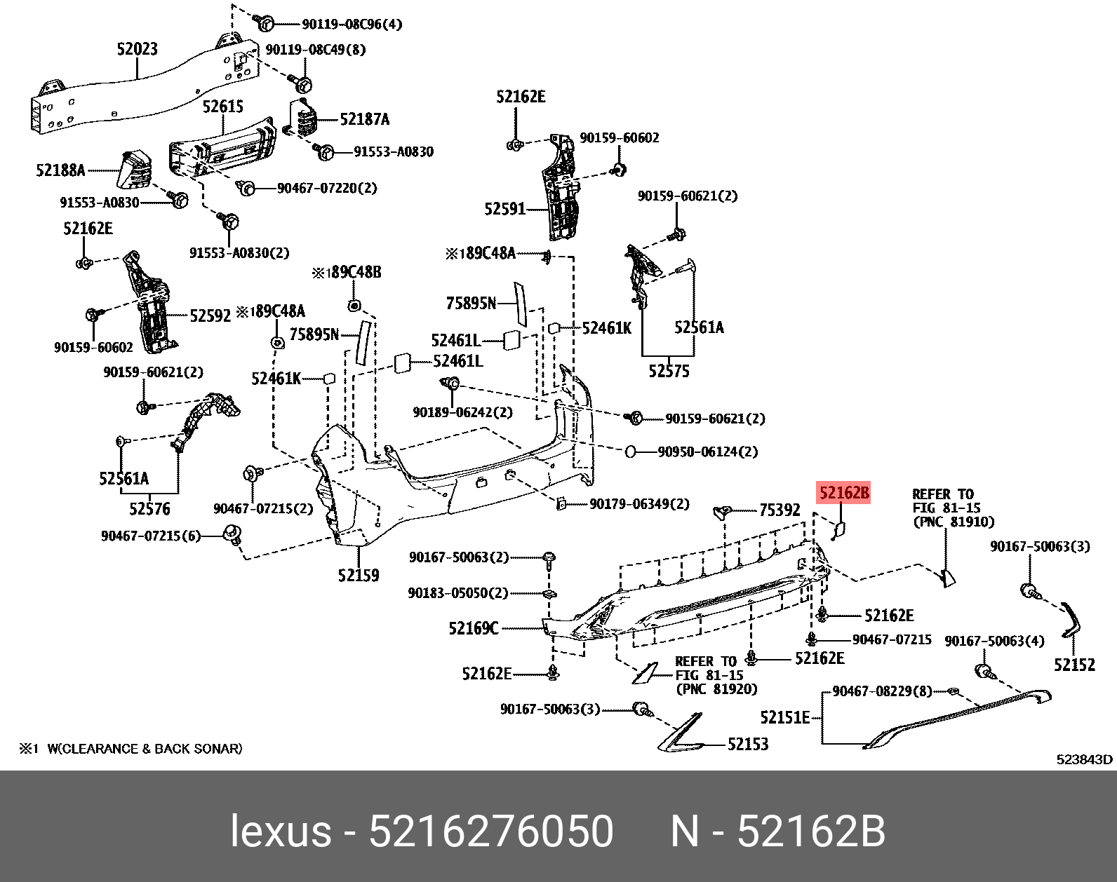 52162-76050 TOYOTA Накладка заднего бампера 52162-76050
