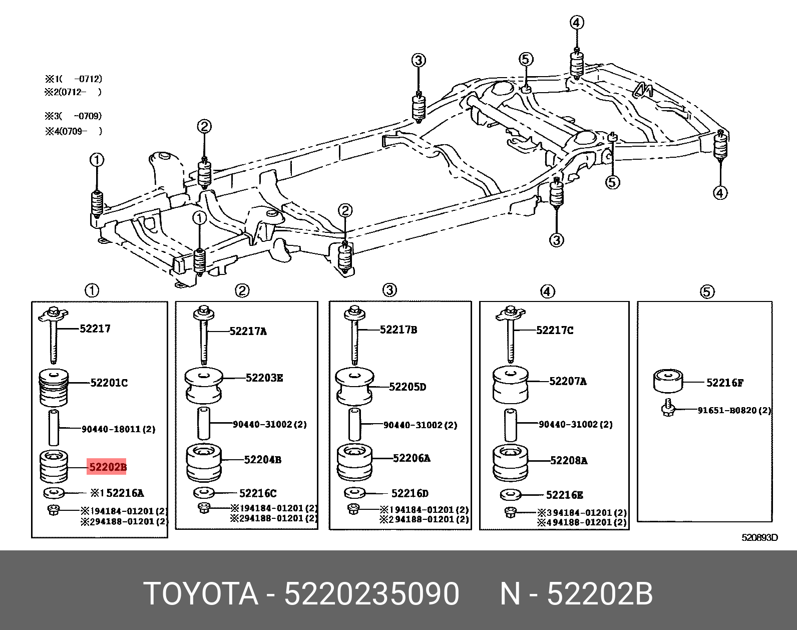 52202-35090 TOYOTA подушка рамы!\ Toyota Land Cruiser PRADO 120 GRJ12/KDJ12/RZJ12/TRJ12 02-09