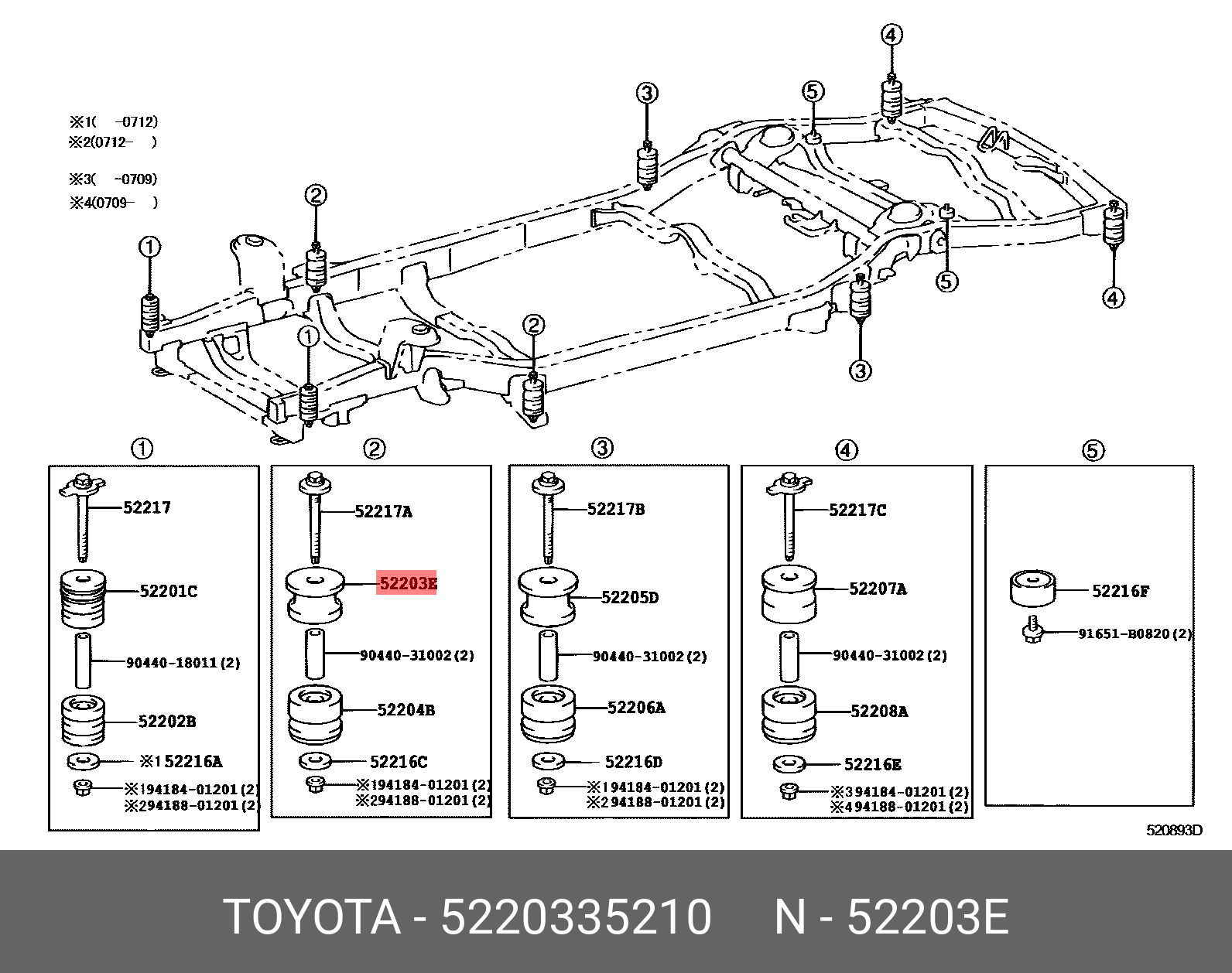 52203-35210 TOYOTA сайлентблок подрамника задн!\ Toyota Land Cruiser Prado 120 GRJ12/KDJ12/RZJ12 02
