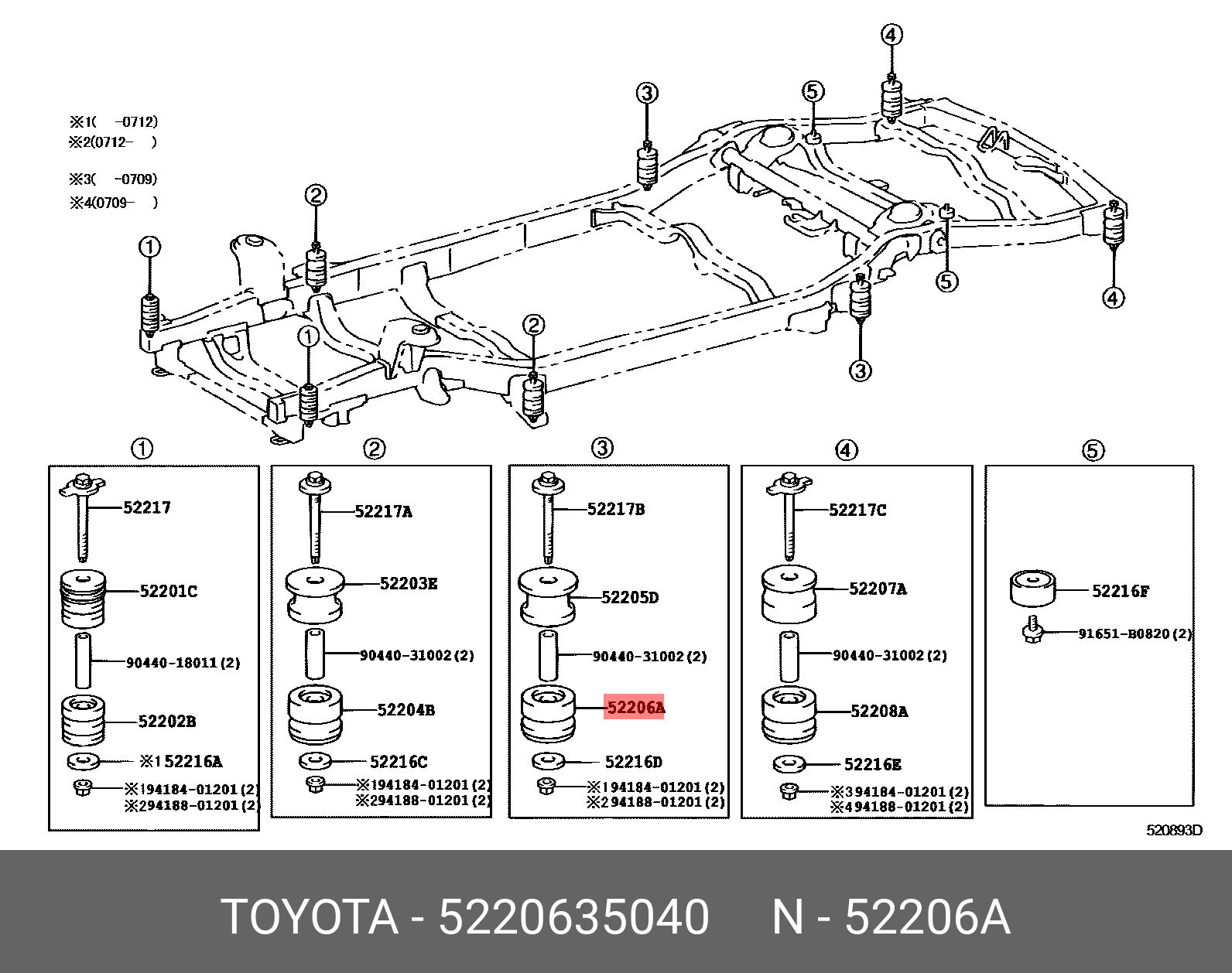 52206-35040 TOYOTA подушка рамы!\ Toyota Land Cruiser PRADO 120 GRJ12/KDJ12/RZJ12/TRJ12 02-09