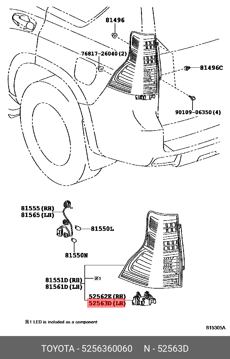 52563-60060 TOYOTA Кронштейн заднего бампера 5256360060 Toyota