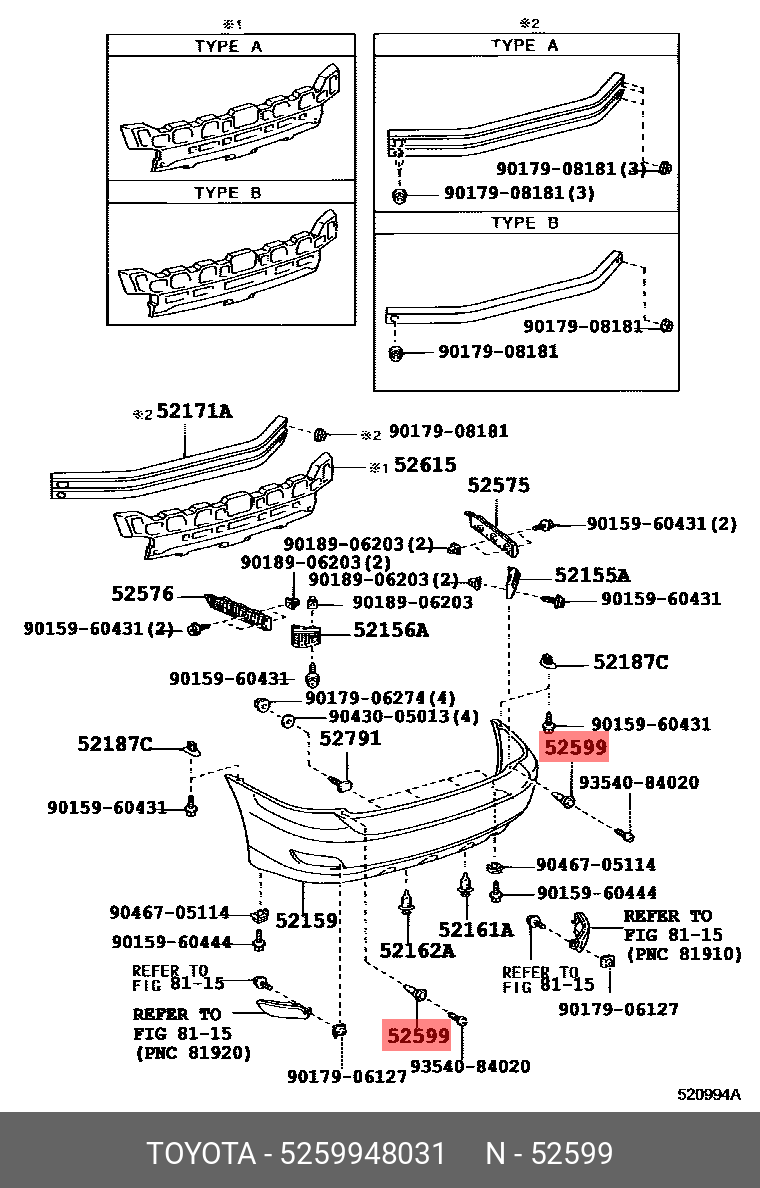 52599-48031 TOYOTA Клипса бампера заднего 52599-48031