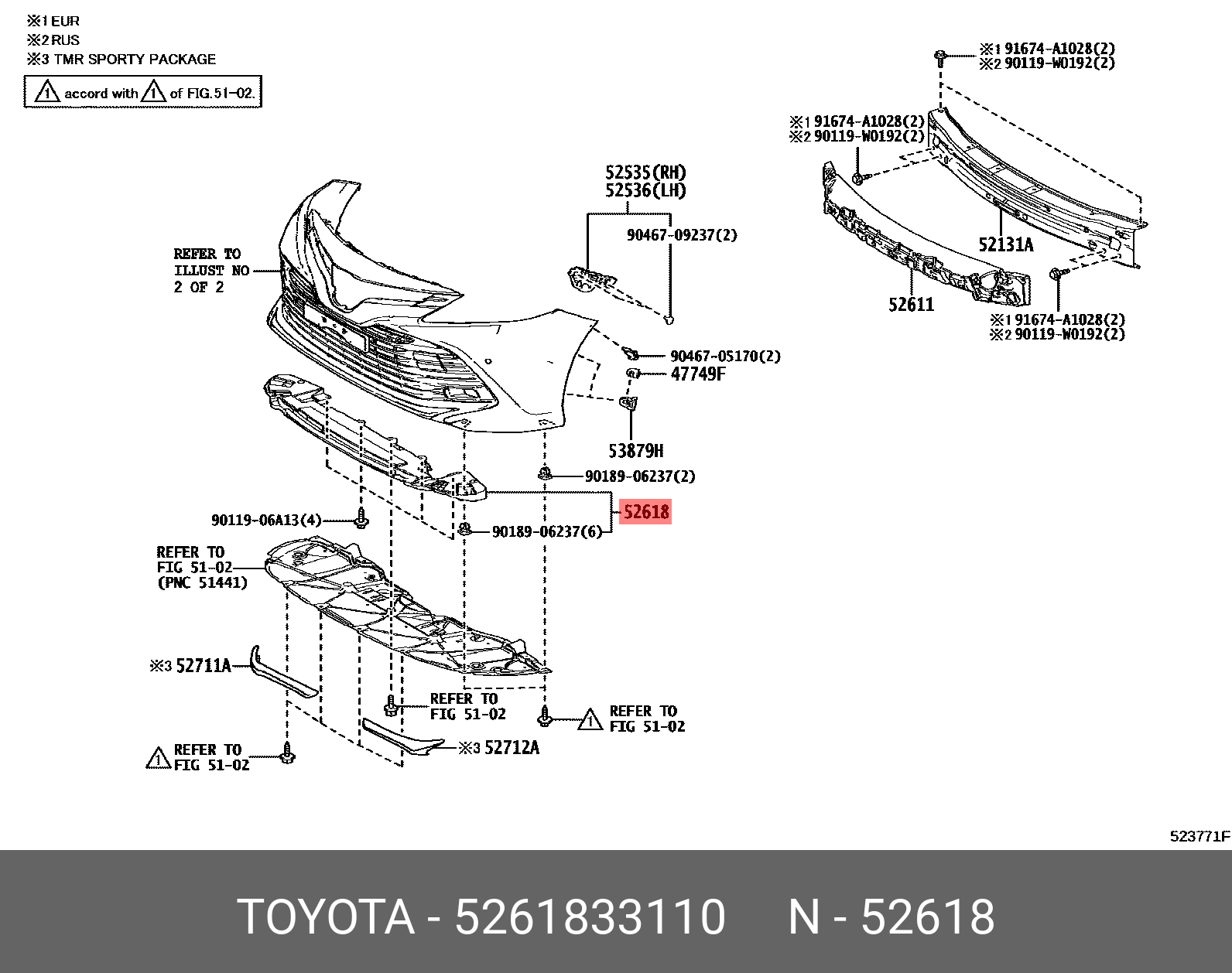 52618-33110 TOYOTA амортизатор бампера! переднего\ Toyota Camry 19-21