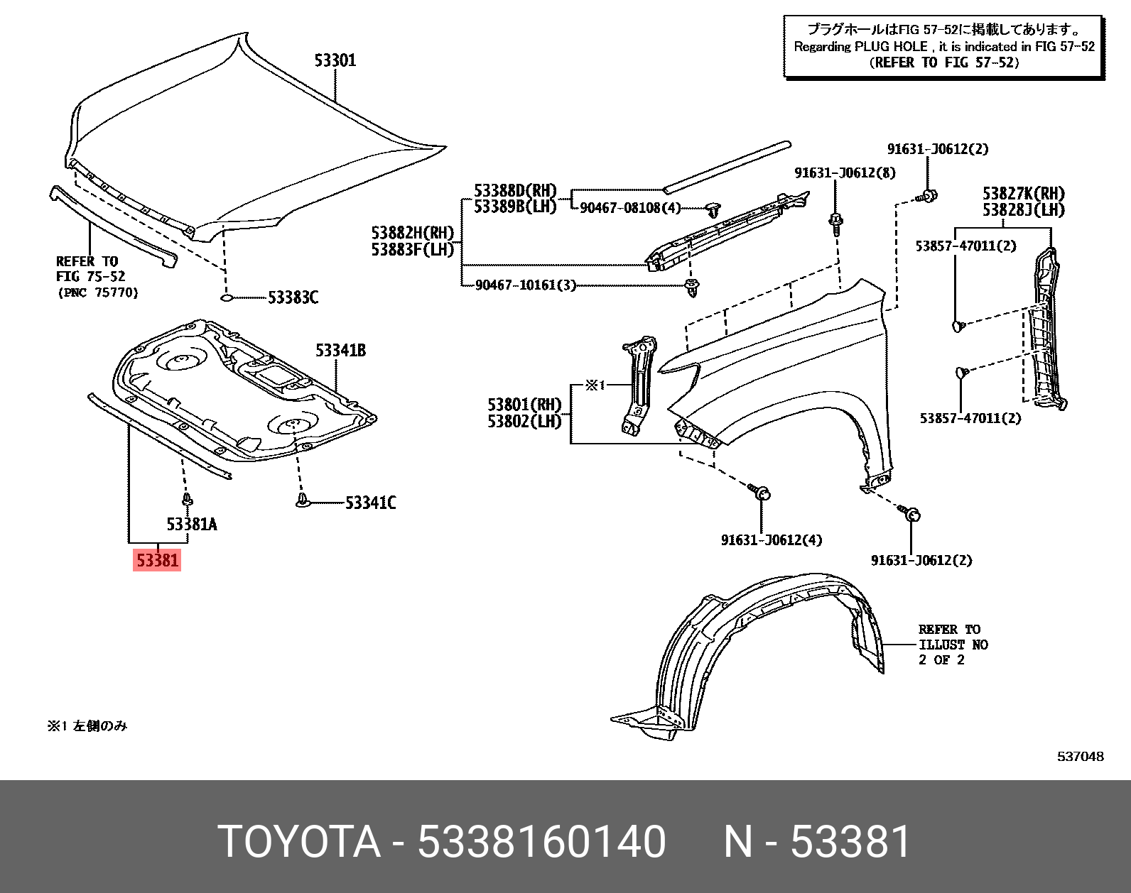 53381-60140 TOYOTA Уплотнитель капота 5338160140 Toyota