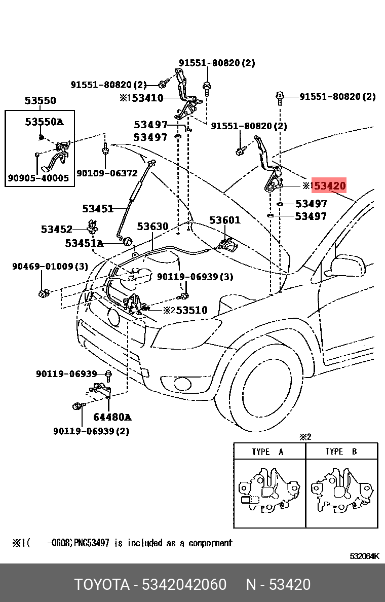 53420-42060 TOYOTA петля капота левая!\ Toyota RAV4 06>