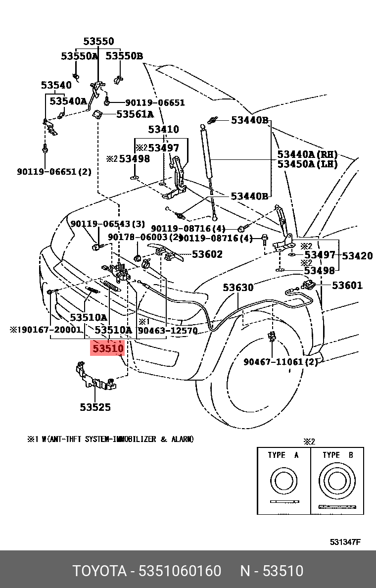 53510-60160 TOYOTA замок капота!\ Toyota Prado