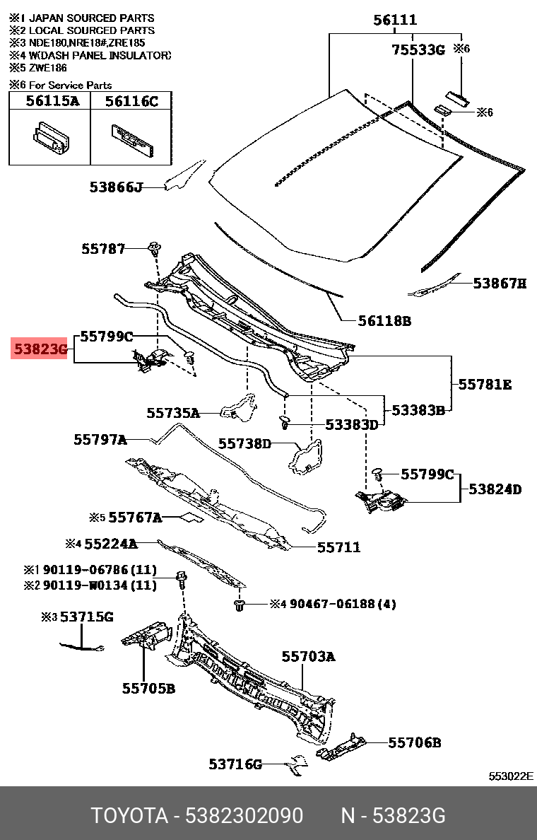 53823-02090 TOYOTA защитная накладка передней боковой панели правая!\ Toyota Corolla 13-16