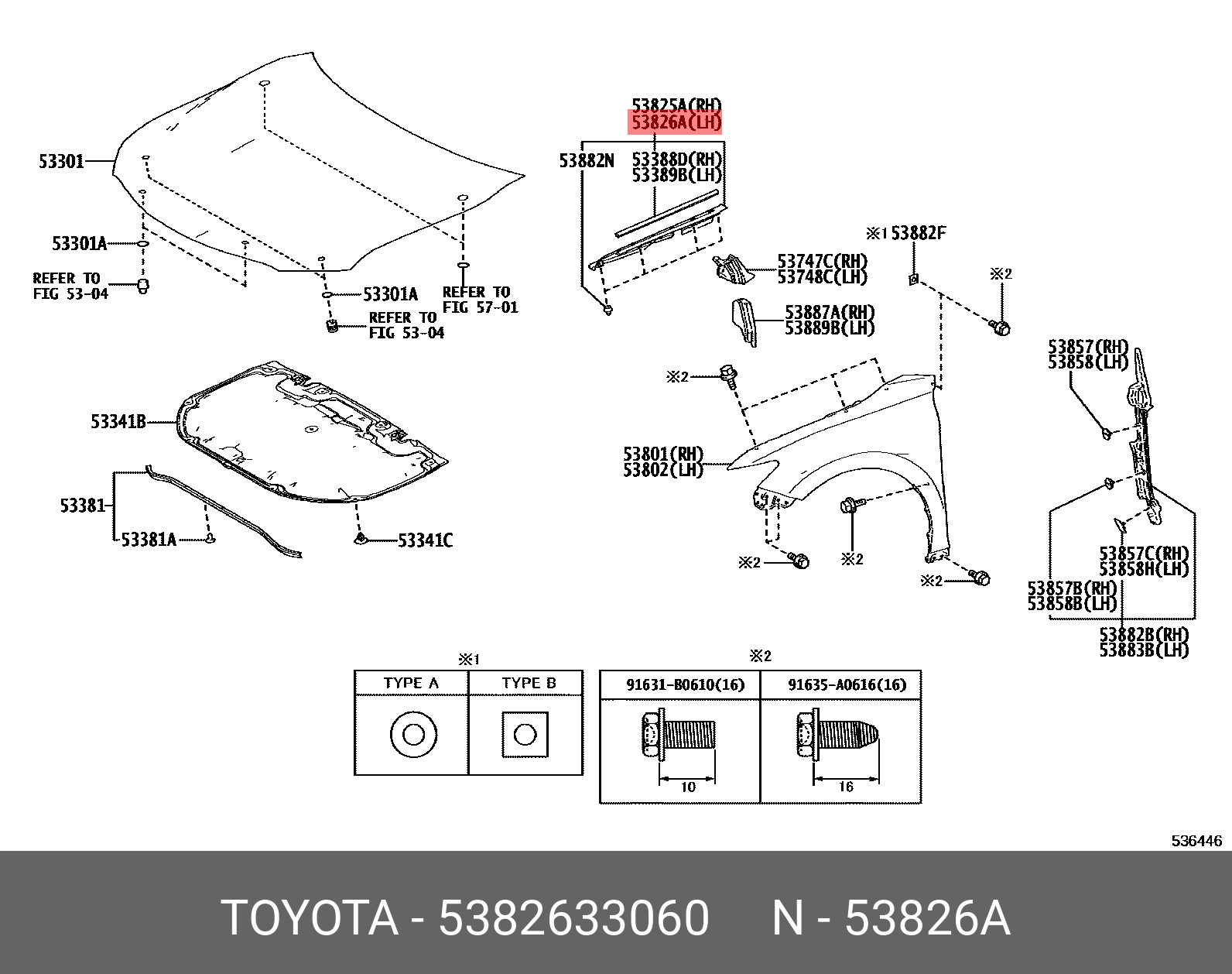 53826-33060 TOYOTA защитная накладка переднего крыла верхняя!\ Toyota Camry 17-18