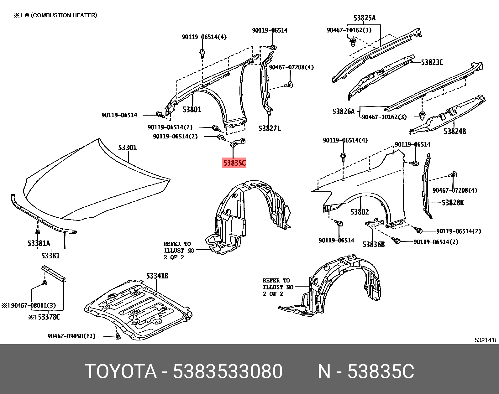 53835-33080 TOYOTA кронштейн крепления переднего правого крыла!\ Toyota Aurion/Camry