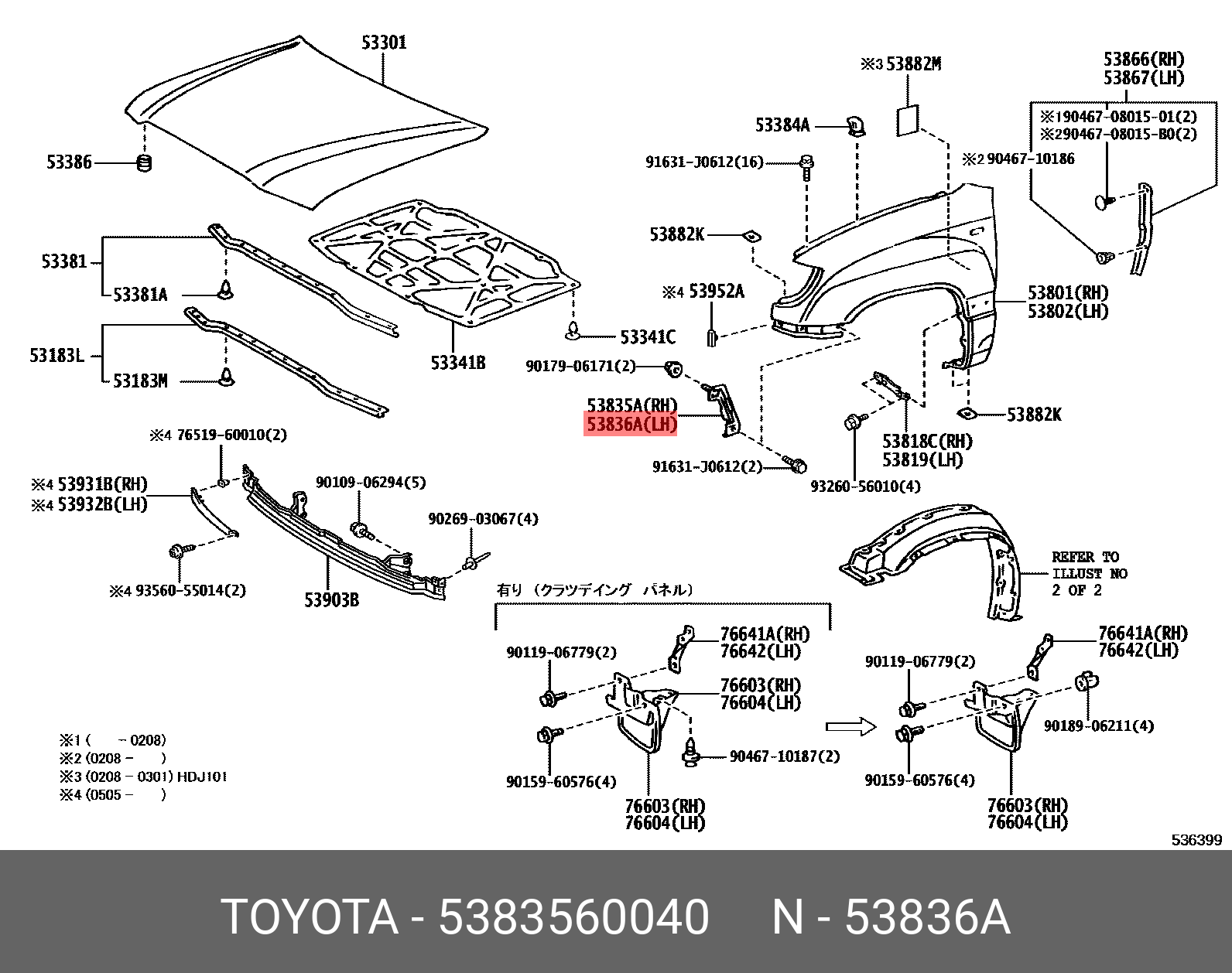 53835-60040 TOYOTA кронштейн крепления крыла!\ Toyota Land Cruiser, Lexus LX470 98-07