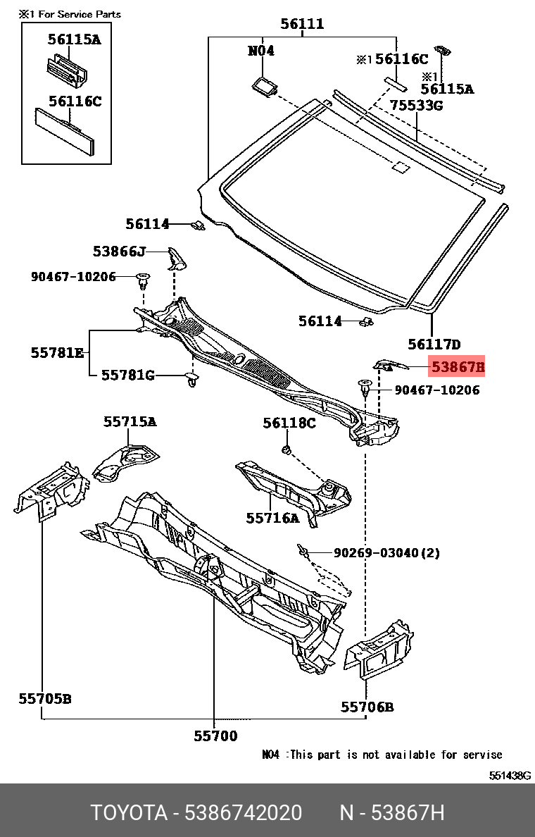 53867-42020 TOYOTA уплотнитель крыла переднего левого!\ Toyota RAV4 13-19