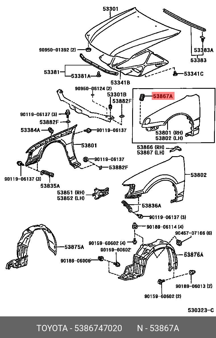 53867-47020 TOYOTA Пистон крепления крыла 53867-47020