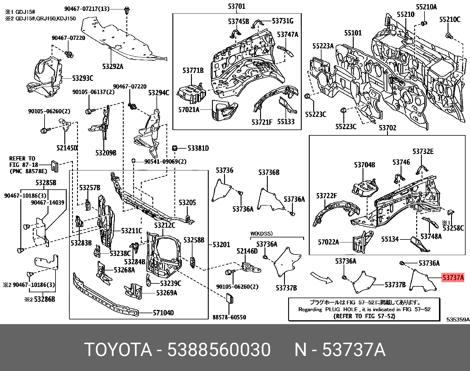 53885-60030 TOYOTA уплотнитель! фартука переднего крыла\ Toyota