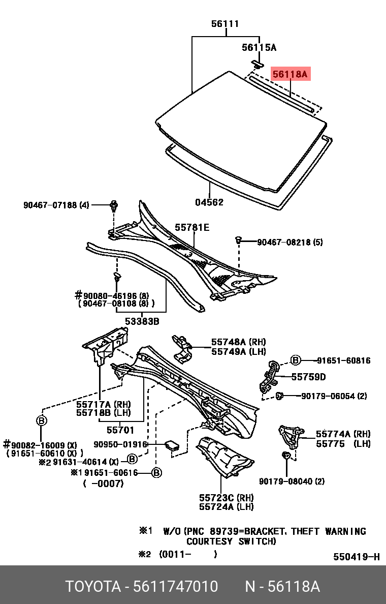 56117-47010 TOYOTA уплотнитель лобового стекла!\ Toyota Caldina/Camry/Corolla/Prius/Verossa