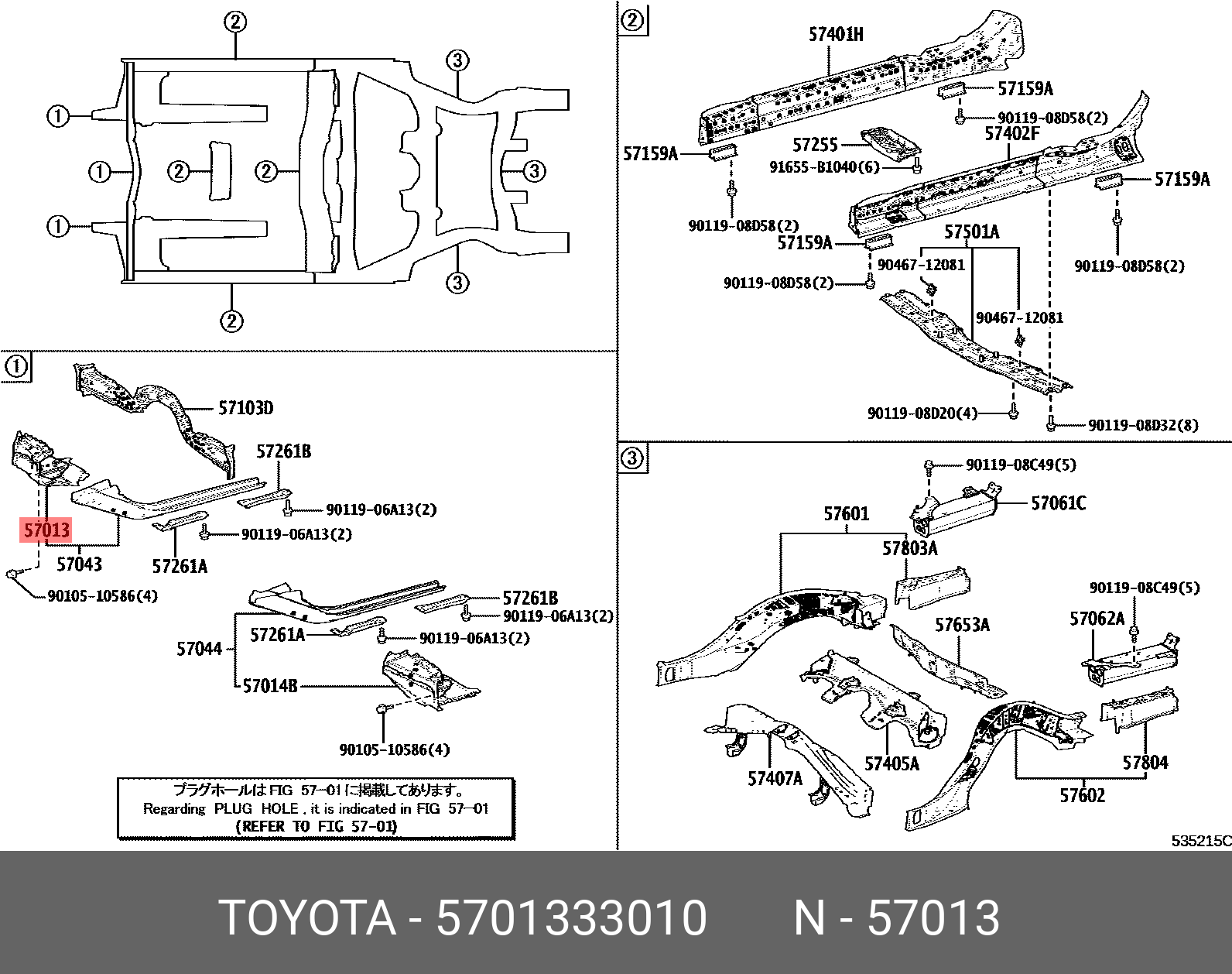 57013-33010 TOYOTA кронштейн бампера! переднего, правый\ Toyota Camry 17>