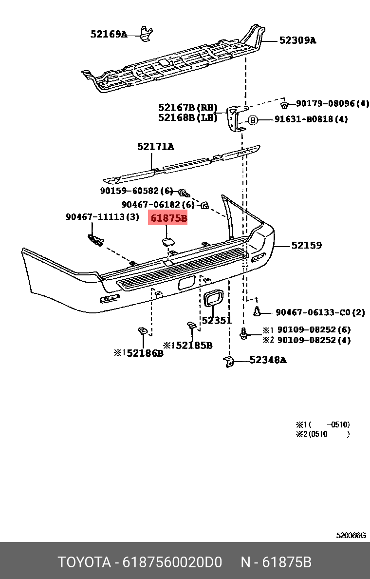 61875-60020-D0 TOYOTA заглушка заднего бампера!\ Toyota Land Cruiser 100 98-07, Lexus LX470 02-07