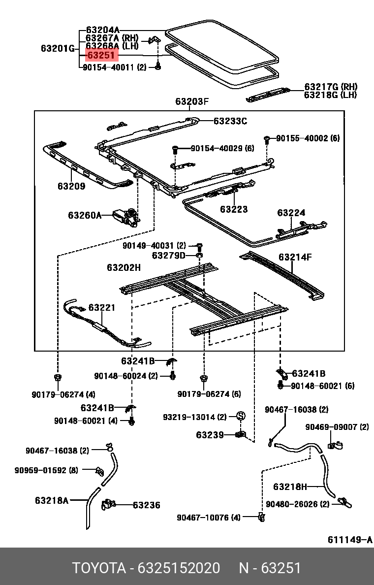 63251-52020 TOYOTA 6325152020 УПЛОТНИТ. СТЕКЛА ЛЮК
