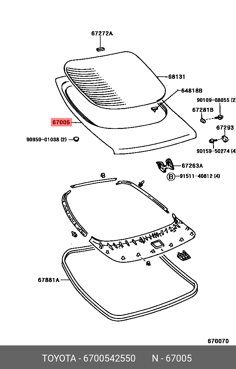 67005-42550 TOYOTA ДВЕРЬ ЗАДНЯЯ