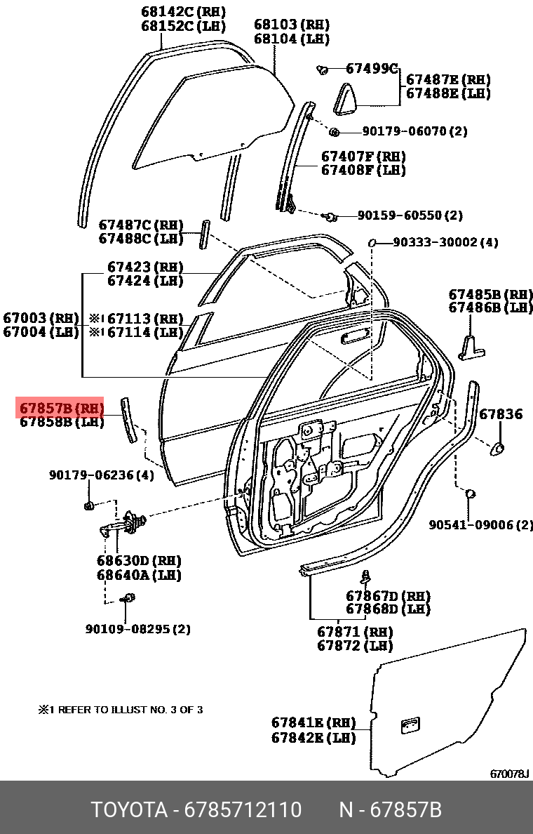 67857-12110 TOYOTA защитная накладка панели задней двери правая!\ Toyota Corolla 07-08