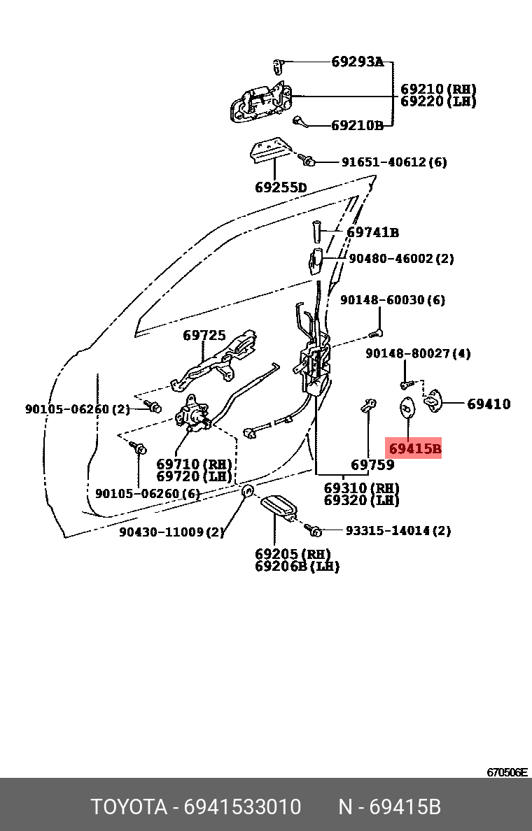 69415-33010 TOYOTA накладка защелки замка двери!\ Toyota, Lexus