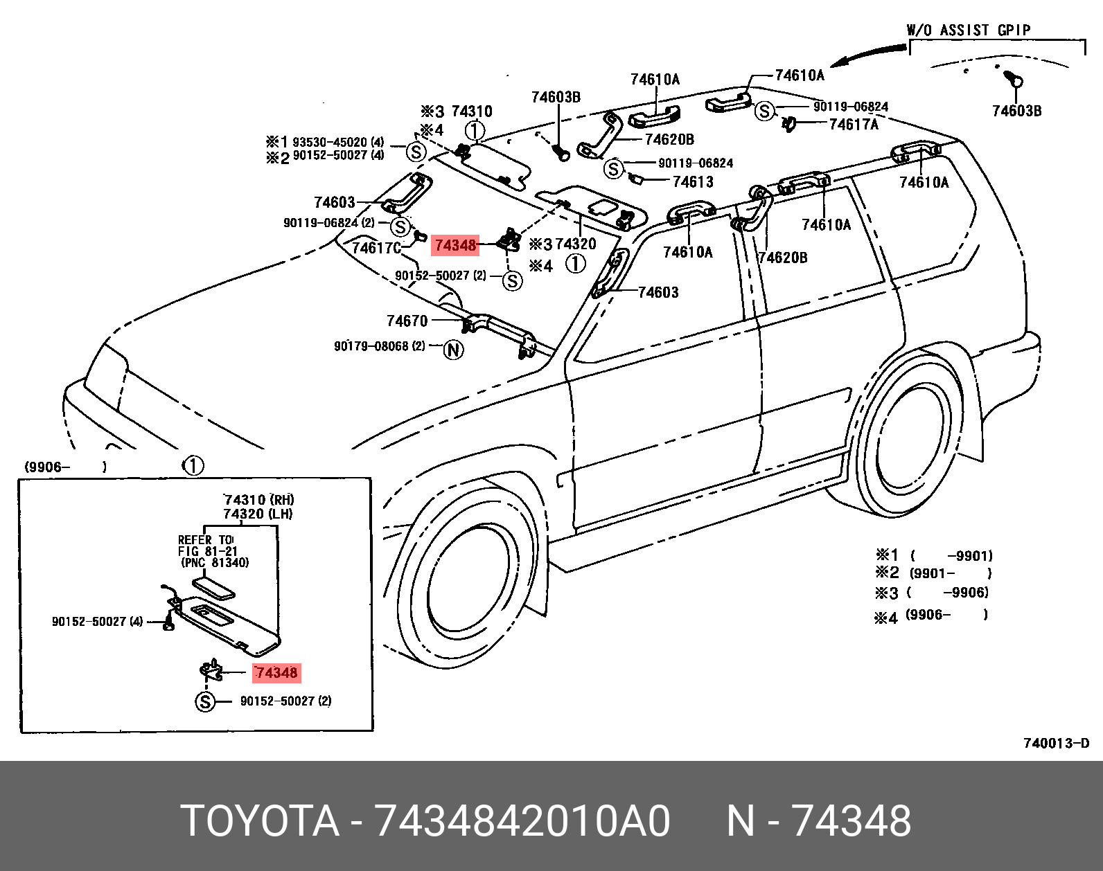 74348-42010-A0 TOYOTA крепеж козырька солнцезащитного!\ Toyota RAV4 00-05